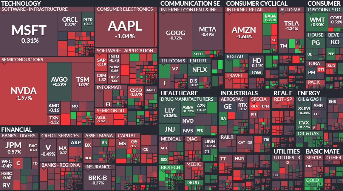 The Dow fell 340 points, or 0.8%, while the S&P 500 dropped 0.9% and the Nasdaq slid 1%. That’s the first time the tech-heavy index has logged back-to-back 1% declines since April, when Trump first rolled out his so-called “liberation day” tariffs. Tech, the same crew that carried the bull market all summer, finally cracked. Nvidia sank more than 2%, Amazon and Apple each lost over 1%, and Alphabet wasn’t far behind.