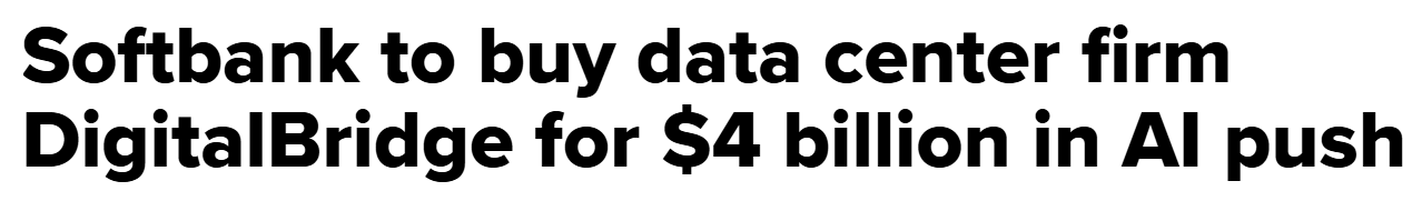 After blowing out its entire Nvidia position for $5.8B to clear room for OpenAI, SoftBank is back with another classic Masa move… dropping $4 billion in cash to buy data-center investment firm DigitalBridge. Because when you’re all-in on AI, GPUs aren’t enough anymore. You need the entire power grid.