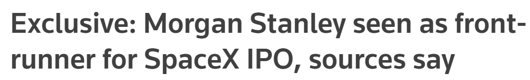 According to reports, Morgan Stanley is shaping up as the front-runner to run SpaceX’s eventual IPO… a deal that could suck the oxygen out of every other listing the year it hits.