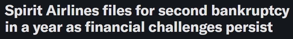 After months of executives swearing “don’t worry, we’re fine,” Spirit just went running back to Chapter 11… a mere nine months after leaving it. Nine months. That’s less time than it takes to grow a baby. And honestly, this baby came out screaming, broke, and already applying for another line of credit. Meaning, the “fixes” from last time weren’t fixes at all… they were more like putting a giant roll of duct tape over a hole in the fuselage and praying nobody asked questions.