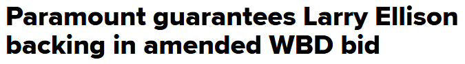 The silver spoon has revealed itself. After weeks of Warner Bros. Discovery acting like Paramount’s $30-per-share hostile bid was written in crayon, Daddy Ellison has now personally guaranteed $40.4 billion of the equity financing. And just like that, the main knock against Paramount’s offer… “yeah but will Larry actually show up?”... is gone.
