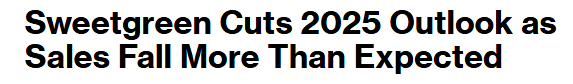 Case in point: Everything Sweetgreen touched has melted. The “healthy fries” experiment lasted five months, portion sizes were bumped 25% and still couldn’t get any action… oh, and their AI-kitchen subsidiary Spyce (read: once the big tech hope) got sold off for $186 million just to scrape together liquidity. Additionally, adjusted EBITDA flipped from +$6.8 million to –$4.4 million. Ooof.