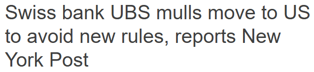 For instance, UBS chairman Colm Kelleher and CEO Sergio Ermotti are playing the classic too-big-to-fail poker hand: threaten to leave, hope regulators blink. Switzerland can’t afford to lose its crown-jewel bank. But the U.S. would love nothing more than to snag one.