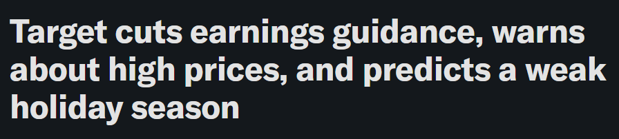 So it shouldn’t surprise anyone that, for the fourth-ish quarter in a row, Target served up another fresh platter of “Yeah, things still suck,” paired with a newly lowered profit outlook and a holiday forecast that does not sound so merry and bright. Naturally, the market said, “Great, thanks,” and sent the stock lower again.