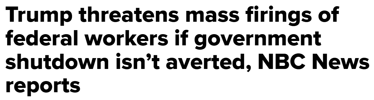 For context, in the 2013 shutdown under Obama, about 40% of federal employees (850,000 people) were benched. This time, Trump is essentially threatening to make that cut the new normal.