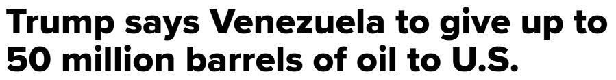 At some point Tuesday night, Donald Trump logged onto social media and shouted at the clouds that Venezuela’s interim authorities are handing the United States between 30 and 50 million barrels of oil. Real barrels at market price… loaded onto storage ships and sailed straight into U.S. docks with Fortunate Son or Money For Nothing (take your pick) on full blast.