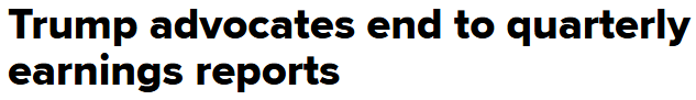 For now though, the suggestion is still in the early stages. But Trump has made it clear this is what we wants… and that is for CEOs to focus on building companies, and not handing out raffle tickets every quarter. But then again, investors want more data, not less. Meaning, while the SEC holds our fate in their hands… place your bets accordingly on this thing. Until next time, friends…