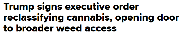 On paper, this should’ve been Christmas morning for cannabis stocks. Schedule III means no more IRS 280E nonsense, which is the tax rule that basically treats weed companies like drug cartels with storefronts. Rent, payroll, normal business expenses? Suddenly deductible. That alone is massive. Add in easier banking access and the possibility of institutional money finally touching the space without compliance lawyers hyperventilating… and yeah, this sounds like the lifeline the industry’s been begging for. Instead, stocks got absolutely nuked. Trulieve tanked more than 23%, Green Thumb got smoked more than 16%, and the AdvisorShares U.S. Cannabis ETF fell out of its a$$ to the magnitude of -27%.