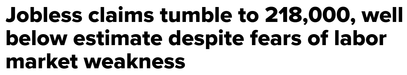 Remember just last week when the Fed pulled out the scissors and snipped rates a quarter point, citing “downside risks to employment”? Yeah, about that. New data just dropped showing jobless claims aren’t rising… they’re falling (“down tremendously”). First-time unemployment filings sank to 218,000 for the week ended Sept. 20, way below the 235,000 estimate and the lowest since mid-July. In other words: companies might be done hiring, but they’re definitely not firing.