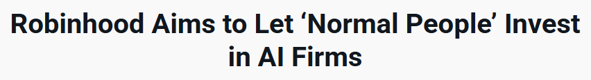In what feels like the final part before the big documentary drop… Robinhood (-10.8%) just announced something preposterous: letting everyday investors buy into private AI startups. (This is not satire, I repeat, this is NOT satire).