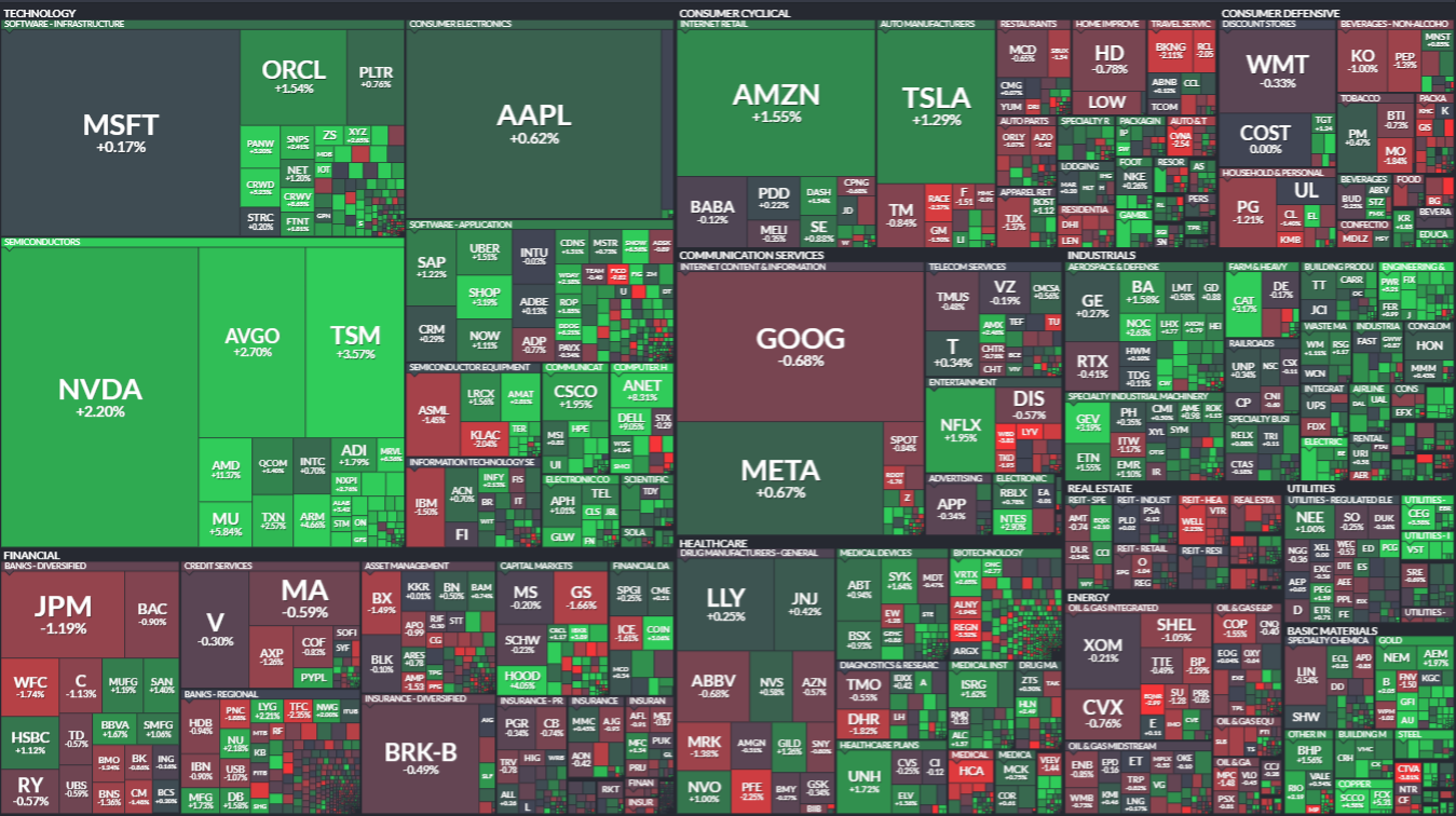 After tanking in Oracle’s shadow a day earlier, Nvidia bounced 2% as CEO Jensen Huang appeared on CNBC to deliver his usual sermon. Demand for computing, he said, has “gone up substantially.” He even confirmed the company helped fund Elon Musk’s xAI, and took a quick swipe at AMD for offering OpenAI 10% of itself in a chip deal. His response? “Surprising… clever, I guess.” Which is CEO-speak for “good luck with that.”