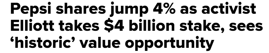 So it appears, PepsiCo’s board woke up to a love letter wrapped in barbed wire today. Why? Because Elliott Investment Management (read: Elliott Investment Paul Singer’s $70 billion wrecking ball of an activist fund) just dropped a $4 billion stake in the soda-and-snacks behemoth and followed it up with a presentation politely telling Pepsi’s leadership: you’re fat, slow, and need a real turnaround before Coke makes you even more irrelevant.