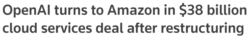 This morning, OpenAI inked a $38 billion deal with Amazon Web Services, officially making Jeff Bezos’ empire its new cloud plug. For context, that’s one of the largest compute deals ever… and it marks OpenAI’s first time shacking up with AWS after years of monogamy with Microsoft Azure.