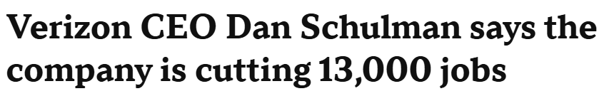 Oh and if that’s not enough, Verizon’s franchising 179 of its corporate stores like they’re pivoting into the sandwich business. But don’t worry… they’re also unveiling a $20 million “career transition fund,” which works out to about $1,538 per laid-off employee. Just enough to cover a month of rent… in 1998. But hey, it’s at least something.