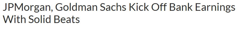 Over at DJ-Sols rave party, Goldman did what Goldman does… made obscene money. he firm posted $12.25 per share in earnings on $15.2 billion in revenue, up 20% from last year. Investment banking fees exploded 42%, advisory revenue surged 60%, and its global banking and markets division pulled in $10.1 billion. Return on equity sat at 14.2%, proving Goldman doensn’t survive volatility… they friggin’ breed it. Oh, and Wells Fargo… a.k.a., the reformed fraud magnet posted $5.6 billion in profit ($1.66 per share) on $21.4 billion in revenue, beating expectations across the board. Credit provisions dropped to $681 million from over $1 billion last year… which is a massive win in credit discipline… all while investment banking fees jumped 25% to $840 million. Bigly.