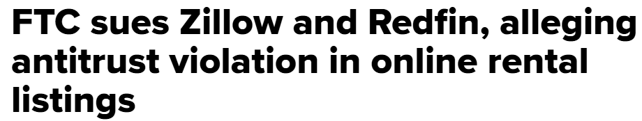 So naturally, Redfin, which had been stealing market share, took the money, torched its rental ad team, and handed Zillow commercially sensitive info on its way out. Additionally, some employees got the sloppy seconds treatments as they were “rehired” at Zillow. But that was about as far as Zillow got with its monopolistic wet dream. Because now, FTC lawyers are sharpening the knives, whereas, they want the deal unwound, assets divested, and maybe a few executive egos stapled to the courthouse wall. Shares of both Zillow and Redfin’s parent Rocket tanked on the news.