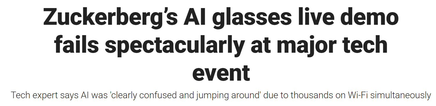 Instead, the demo went about as smooth as Taco Bell the morning after. As soon as he started trying to show off… calls wouldn’t connect, recipes wouldn’t load… basically everything went to sh*t. So Zuck had to fall back on the classic tech bro excuse (“bad WiFi”) like a college kid begging for an extension on their 12-page term paper they started the night before.