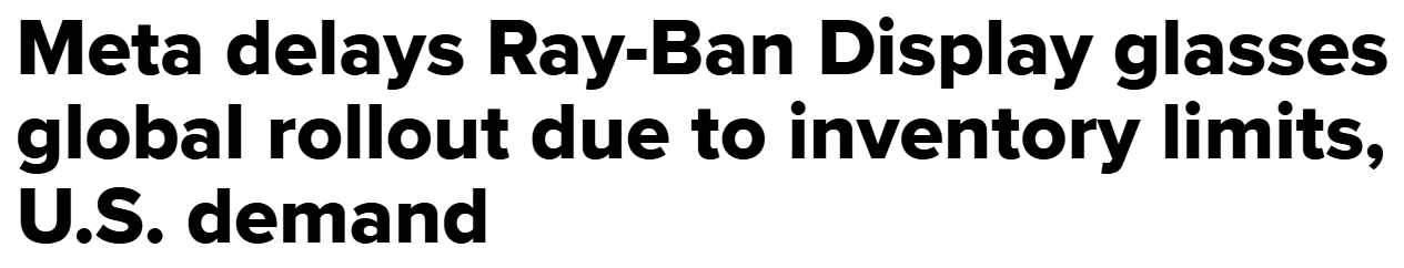 More specifically, Meta Platforms says it’s pushing back the international launch of its $799 Ray-Ban Display AI glasses after what it politely calls “unprecedented” U.S. demand. Translation: they ran out. Badly.