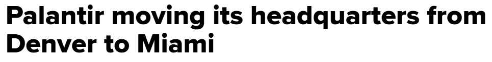 Palantir’s Iron Throne King, Alex Karp, is going full Miami Vice as Palantir announced Tuesday it's packing up and taking its talents to Miami, completing what is now officially a two-step retreat from civilized weather. First was Palo Alto → then Denver in 2020, and finally Denver → Miami. Three times a charm.